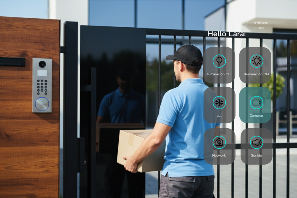 En tu trabajo y paqueteria llega antes de lo pensado, tu hogar sigue respondiendo. Revisa tus cámaras. Automatizar es tranquilidad constante y conexión total con tu espacio.